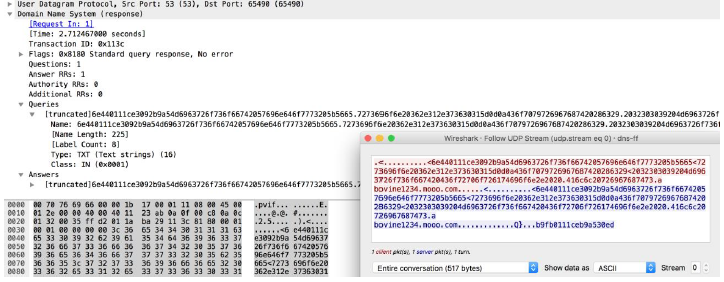 Checks multiple conditions of a DNS response to detect TCP-over-DNS.