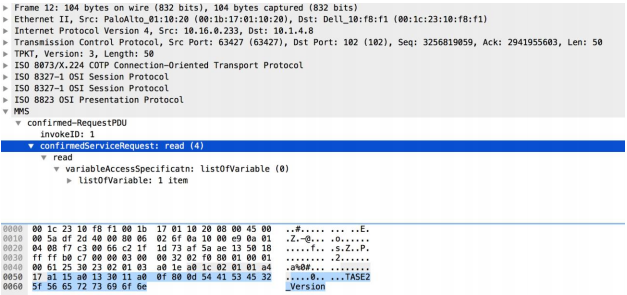 ICCP function codes such as read, write, identify,
