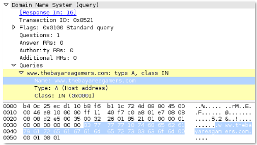 is a direct pattern match against the format of a DNS query, so
