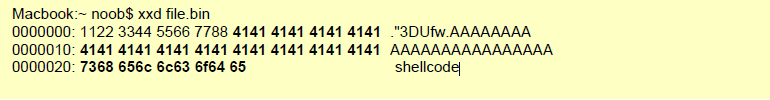 what wouldn’t be matched. Next are “A’s” followed by “shellcode”