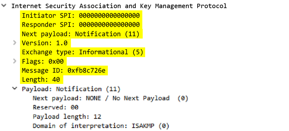 Full IKE header from the responder, including the responder’s