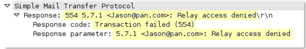 SMTP server response content.
