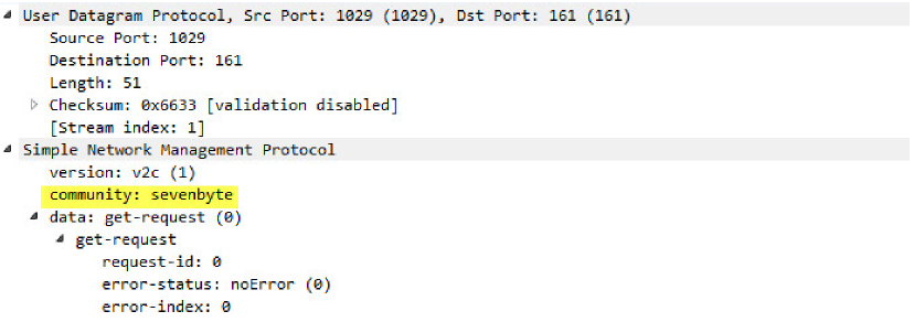 This context tracks the value of the variable field, “community” in the SNMP request header.