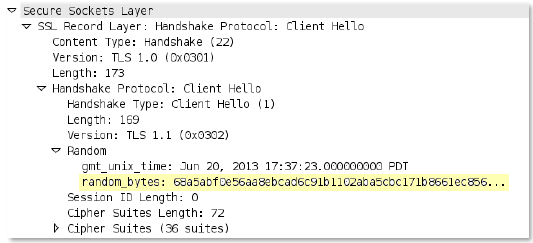 Random bytes field in the SSL client hello.