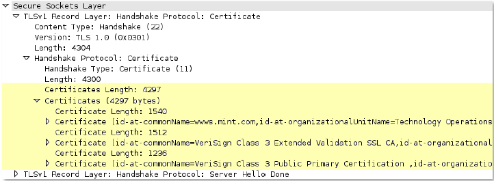 Certificate response message of a SSL negotiation from the server.