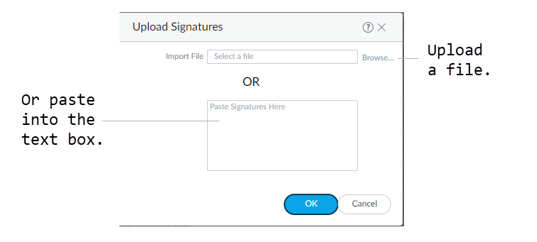 - Select PanoramaIPS Signature ConverterManage.Upload Signatures.Select one of two methods for uploading your rules: