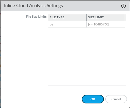 Review the maximum file size that can be forwarded for analysis using Advanced WildFire Inline Cloud Analysis.Advanced WildFire Inline Cloud Analysis provides a fast WildFire verdict, however, a full report for a malicious sample is only available after the sample undergoes full dynamic analysis, which can take up to 30 minutes.![]()  - Select DeviceSetupWildFireInline Cloud Analysis Settings and review the file size limits.