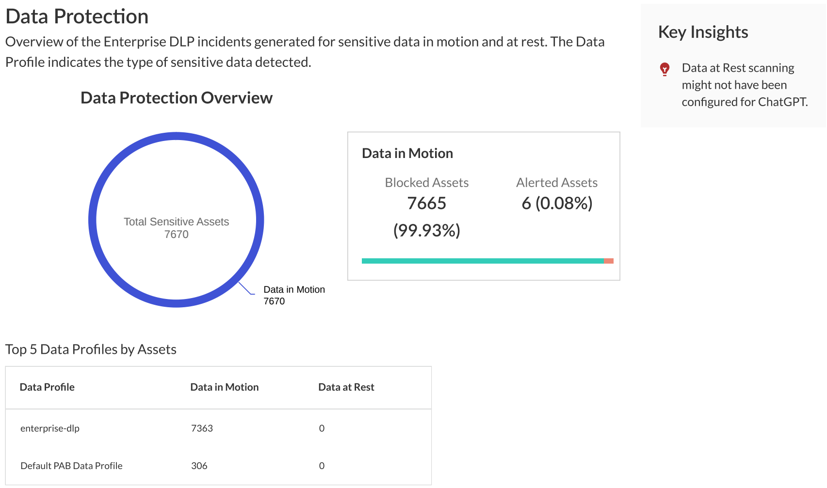 - Total number of sensitive assets detected, categorized as Allowed or Blocked.