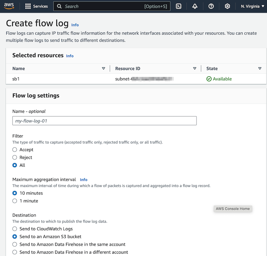 - Sign in to the AWS Management Console.Go to the VPC dashboard > Subnets.Select the subnet for application VPC and switch to the Flow logs tab.Create a flow log or edit an existing flow log.