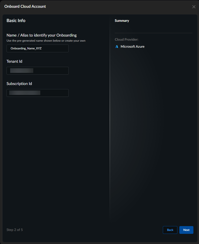 Enter basic information:- A unique Name to identify your onboarded cloud account. (Limit the name to 32 characters).