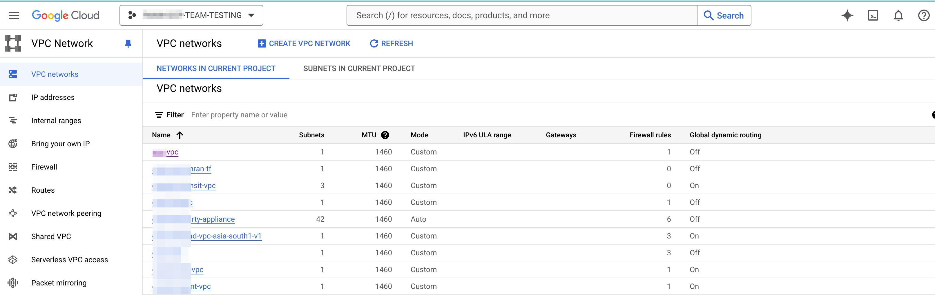 - Go to Google Cloud Console and select the project you want to onboard for discovery.Navigate to VPC Networks.Select the VPC with the workloads (VMs/Containers) to protect.