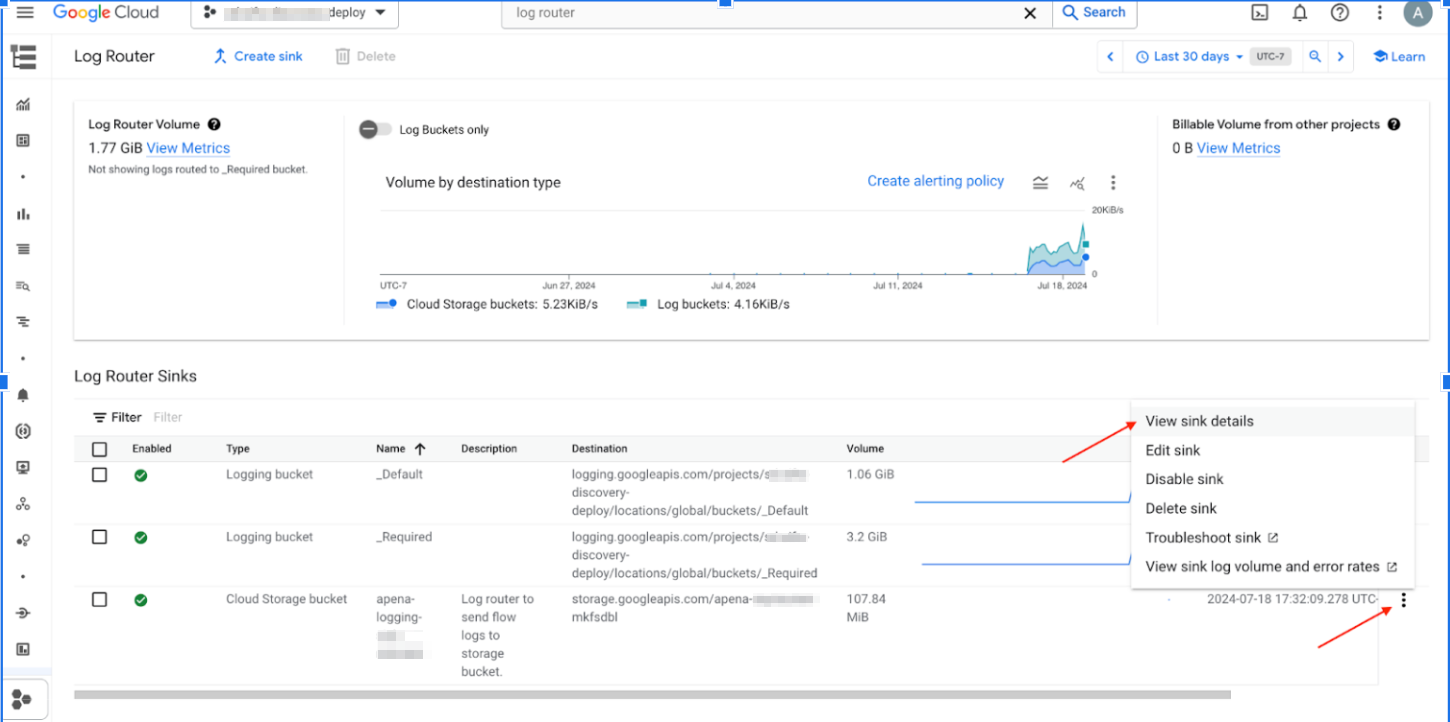 In the Google Cloud Console search for Log Router:- Select Create sink.