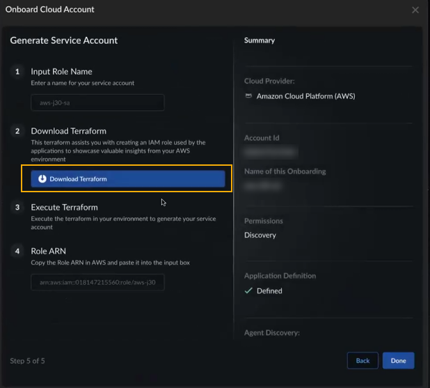 - For new accounts, you'll need to onboard a cloud account if one is not present in the tenant.