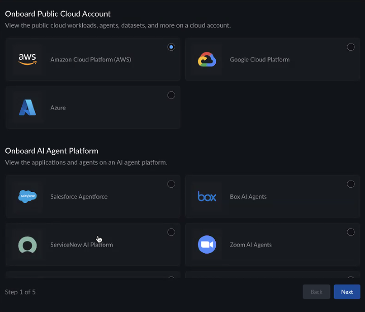 3. Use the Onboard Public Cloud Account page to onbouard your SaaS agent:
