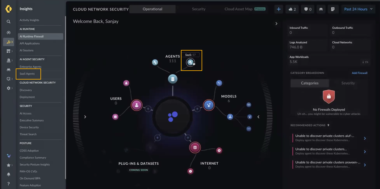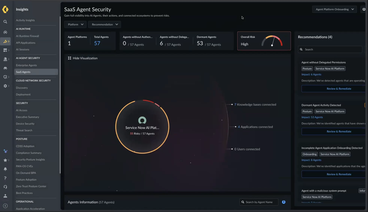 1. In SCM, select Insights > AI Agent Security > SaaS Agents.