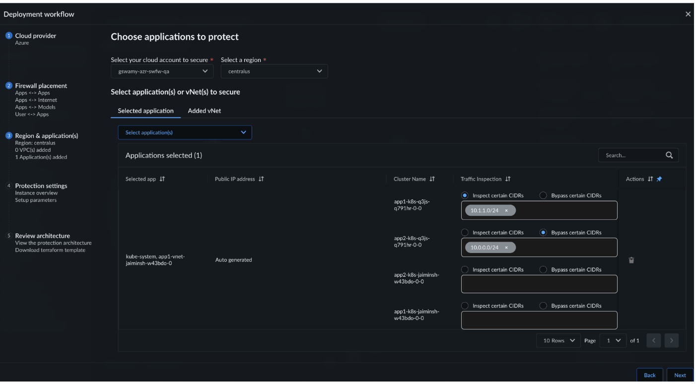 In Firewall Placement, select one or more traffic flows to
