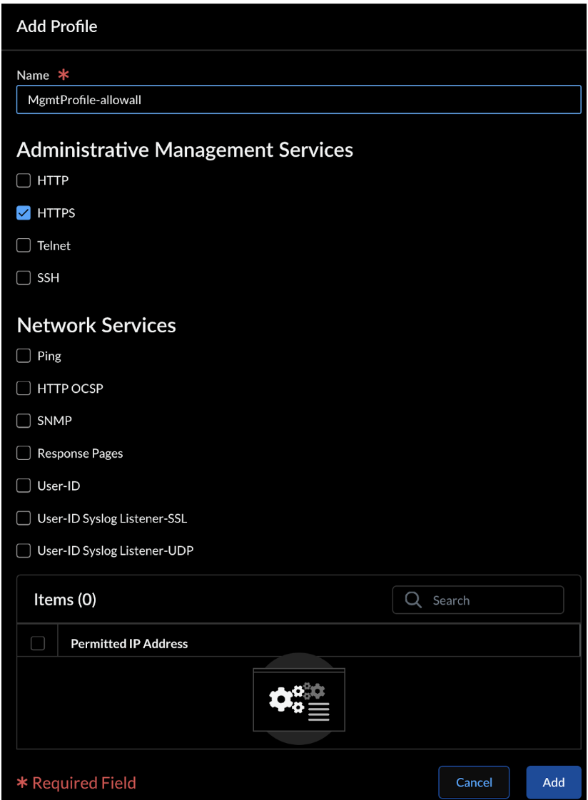 - Select a Management Profile or create a new one.In Administrative Management Services, enable HTTPS.