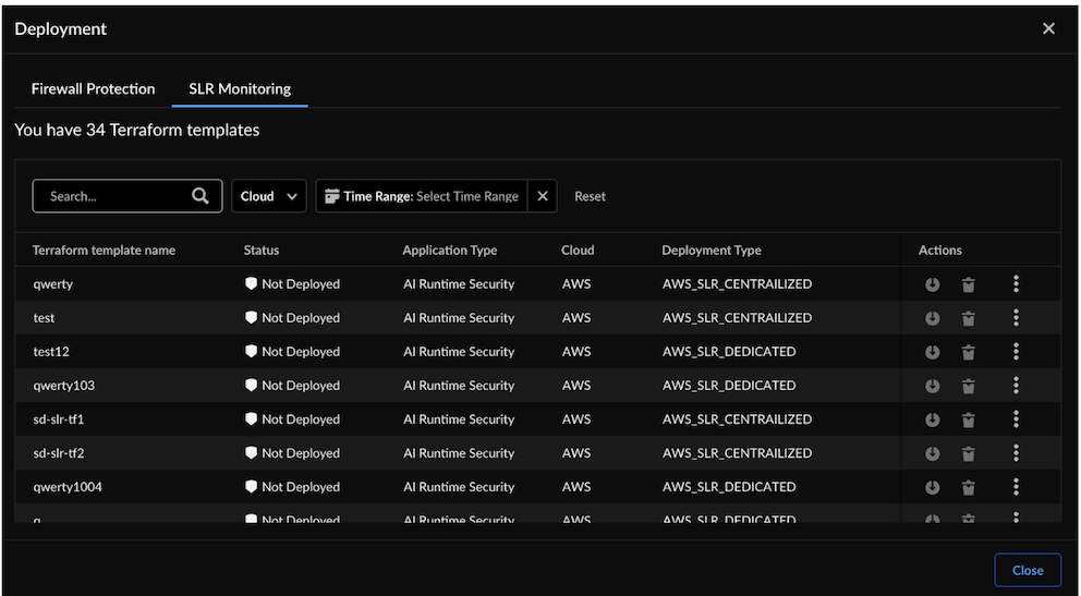 Per application VPC-based deployment is indicated as "AWS_SLR_DEDICATED".
