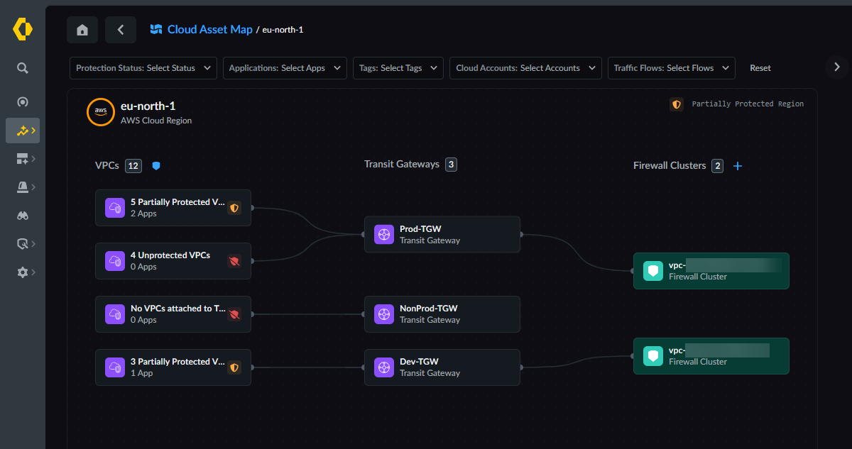 protection status of the applications and VPCs or VNets in your cloud environment.