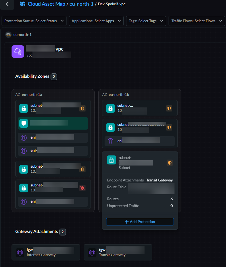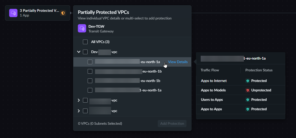 lists the subnets within that VPC. Hovering over a subnet provides the protection