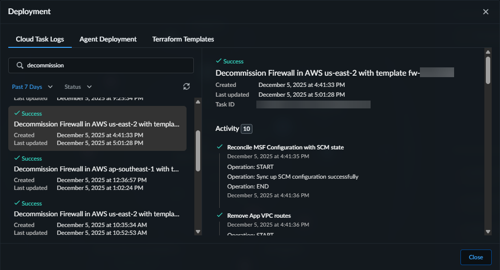 Select the Cloud Task log tab.Locate the Terraform template by entering its name in the search bar.