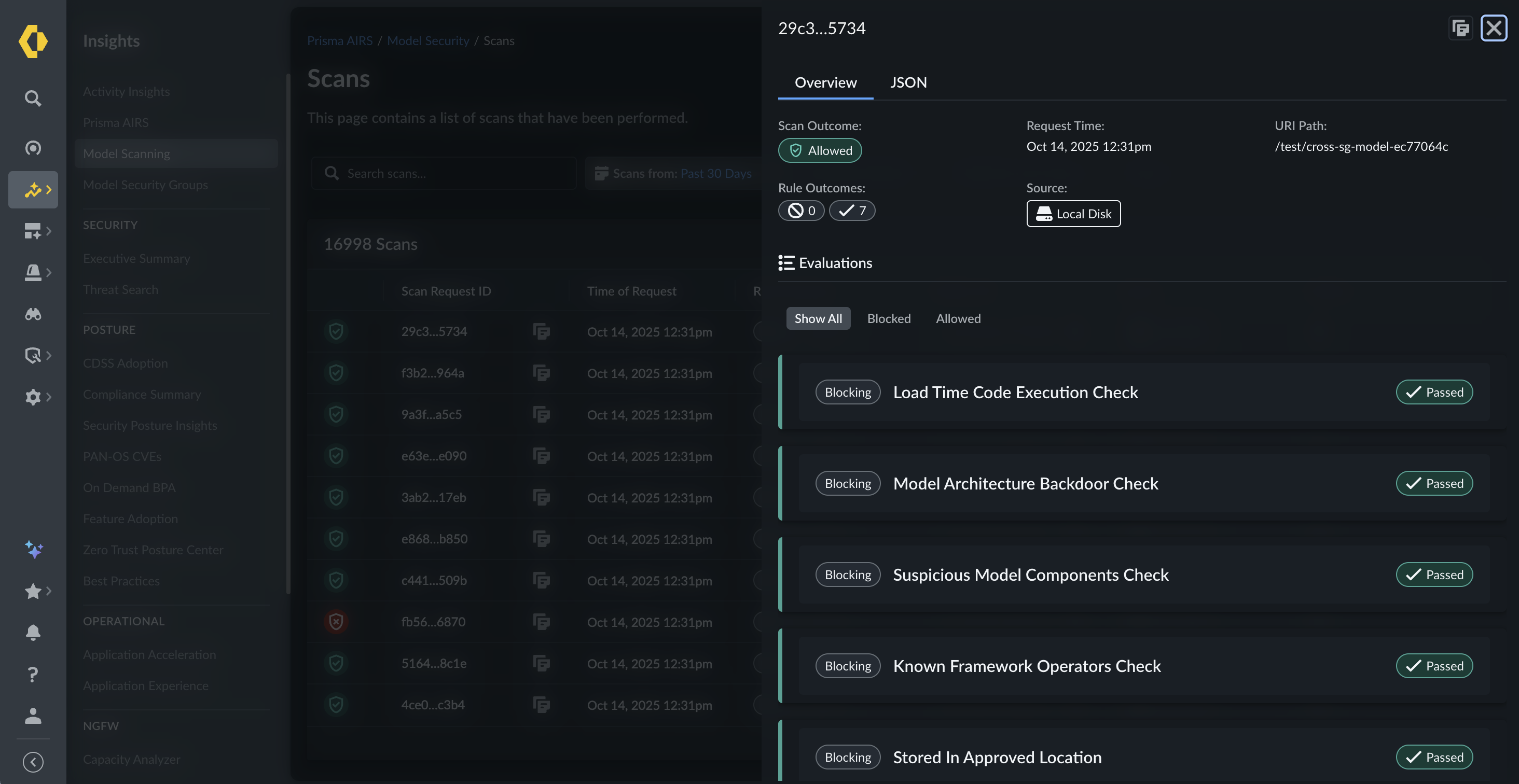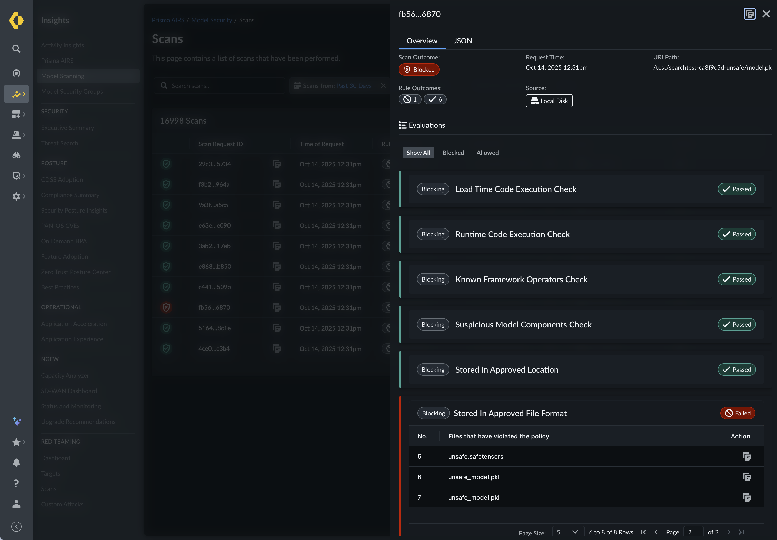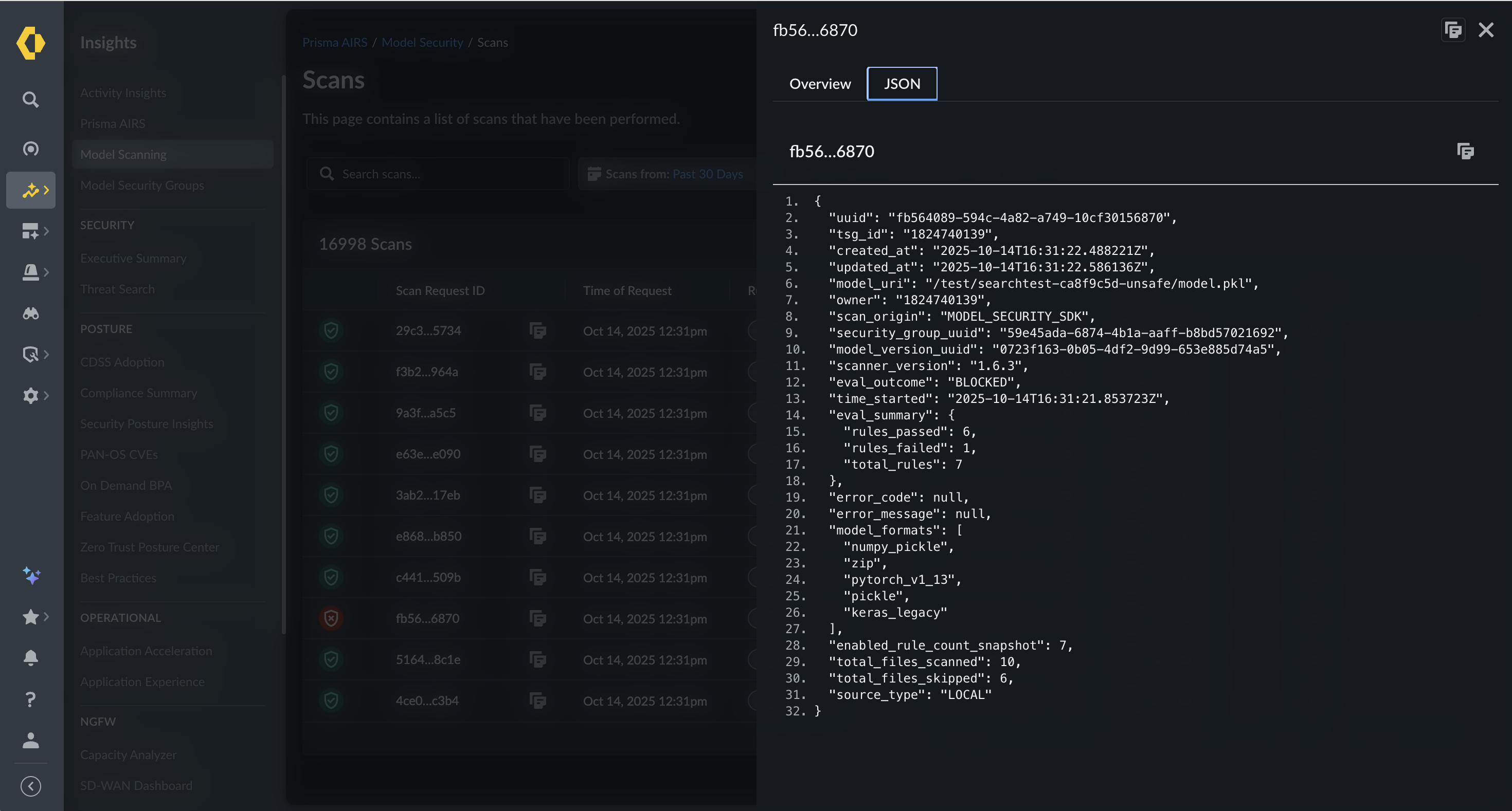 Although the CLI delivers complete results, the AI Model Security web interface provides additional tools for analyzing scan findings.
