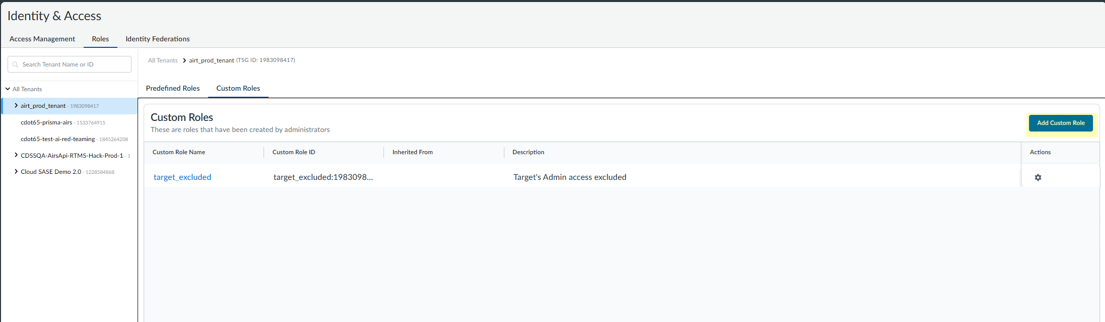 1. To create a new custom role and assign it to their identity, select Roles and then Custom Roles.