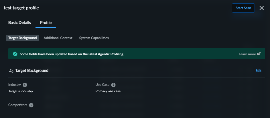 section shows the target profile settings.