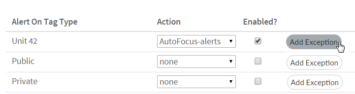 . Create exceptions so that the alerts you receive for threat samples are prioritized by tag.