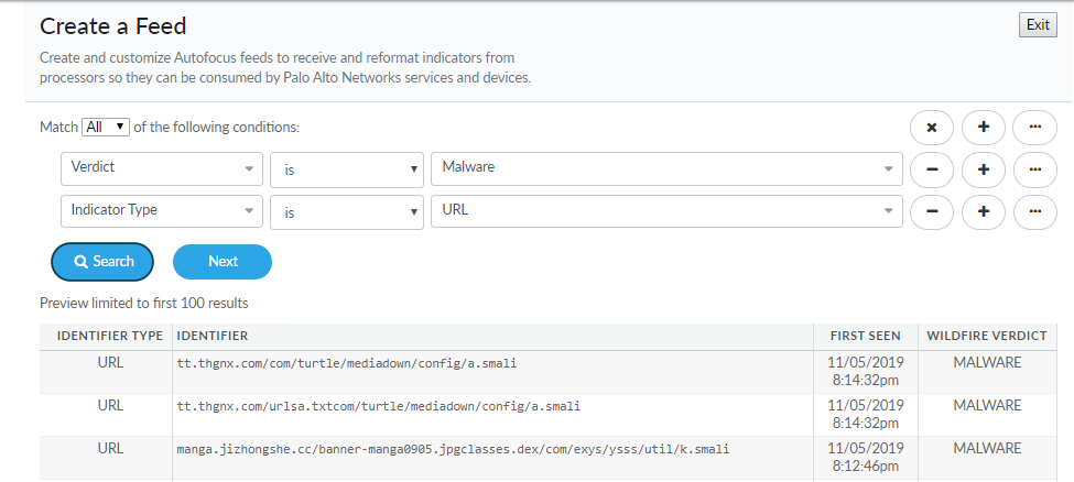 - EDL—Provides an external dynamic list to be used with the Palo Alto Networks firewall.