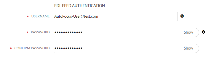 - (EDL Feeds Only) Specify the EDL Feed Authentication username