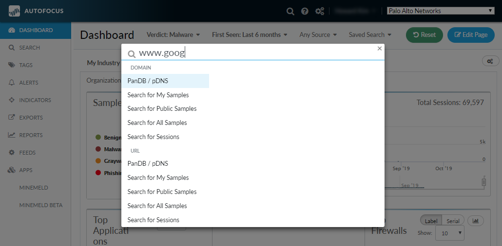 any page in AutoFocus™, or use the AutoFocus search editor to perform