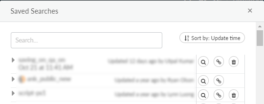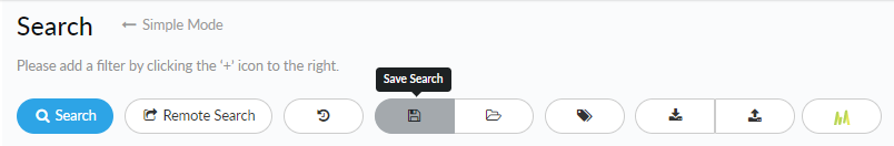 Save searches that you might be performing on a regular basis, or to quickly recreate useful search settings:Click the Save Search icon, enter a name and description to identify the saved search when using it later, and save the search. - Use a saved