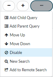 Disable a condition to temporarily remove it from a search. This option provides the flexibility to temporarily adjust your search parameters, and then quickly and easily add the condition back to your search if necessary.Disabled search conditions are grayed out: