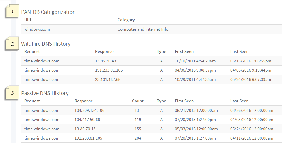 or IP address through PAN-DB and the PAN-DB category for each