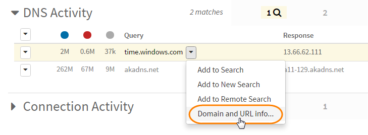 When searching for a domain, URL, or IP address