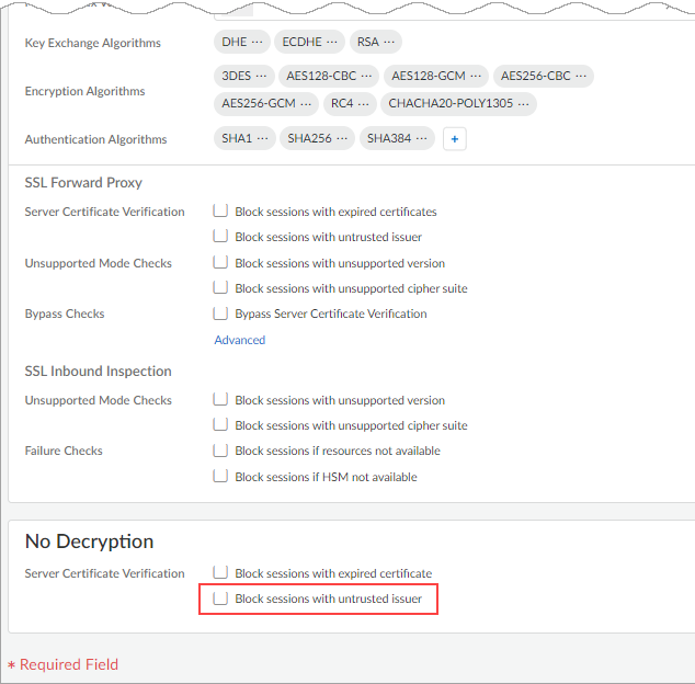 Create a new decryption profile. Under Decryption