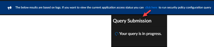 To view details of the security policy that indicates current status of user access, click the link in the banner above the Logs table to run the Check Security Policy Only query.
