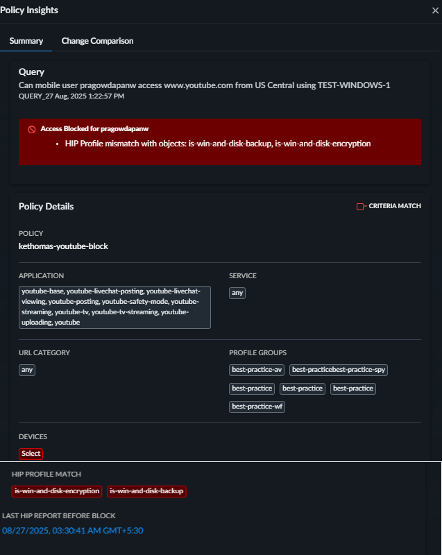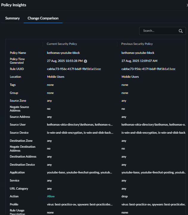 provides clear visibility into the specific attributes evaluated when a policy rule