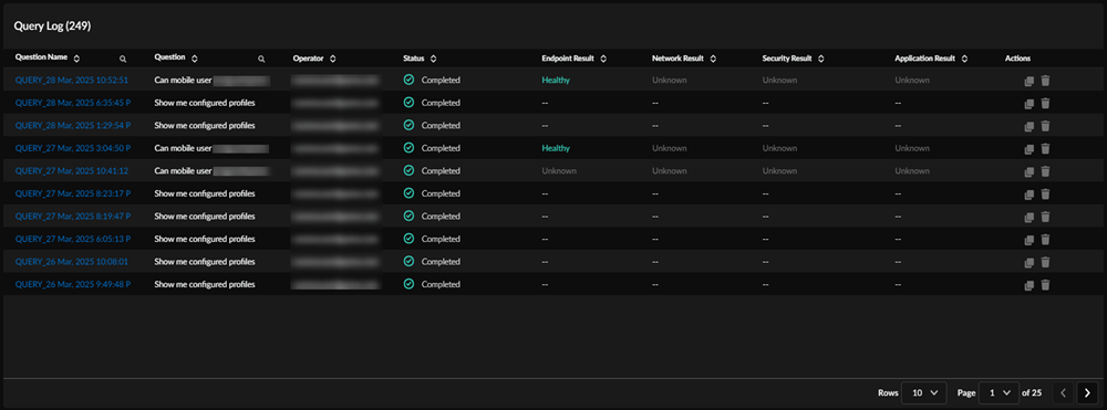 Select any Completed query by Query Name to open the Query Results page for details.To refresh the Query Log, select the Refresh button in the upper right corner, select a predefined refresh option, or disable Auto-Refresh.