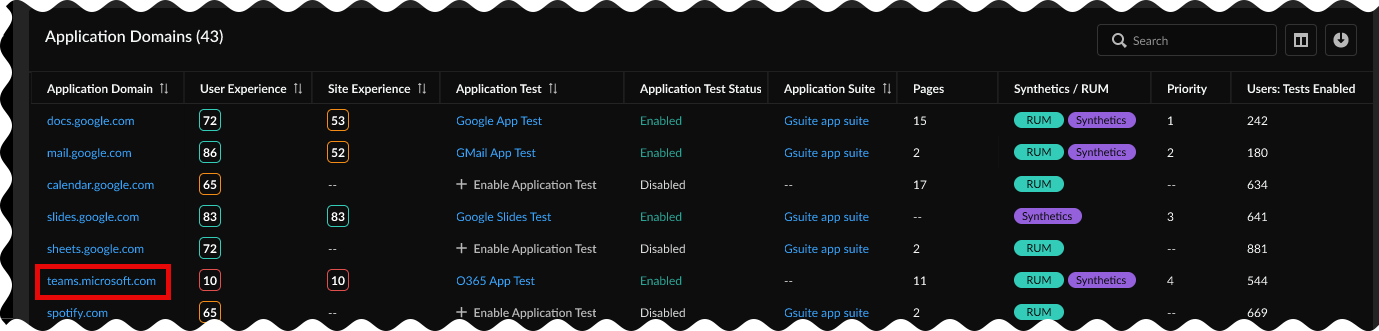 Go to InsightsApplication ExperienceApplication Domains.