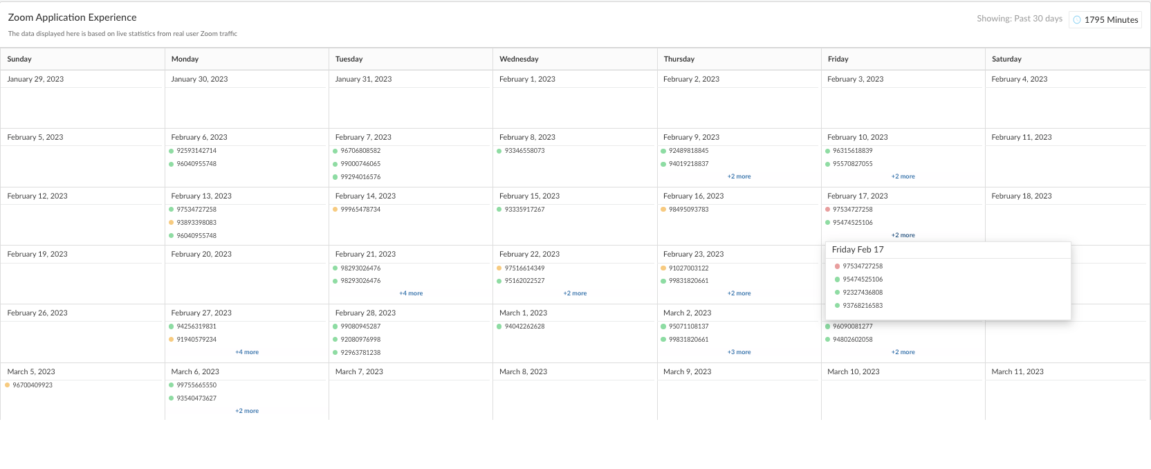 view with their meetings listed on each day. This calendar is populated using Zoom call