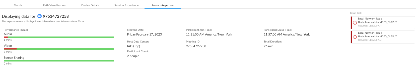 View the details of each meeting attended by a user during the selected