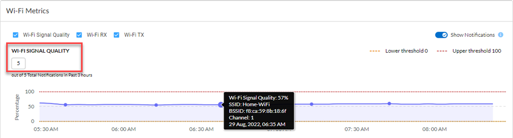Toggle the Show Notifications button to either display or hide the notification metrics.