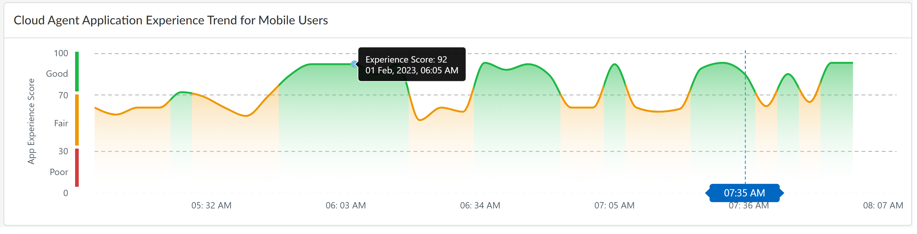 View the application experience score trend during the selected Time