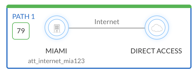 The Direct Access Path shows which remote site (Miami) and circuit name (att_internet_mia123), has direct access to the applications. The circuit name is derived from the name configured for the circuit on the Prisma SD-WAN controller.