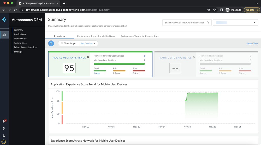 When Administrators sign in as ADEM Tier 1 Support role, they see the ADEM application