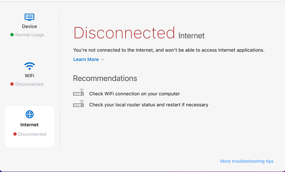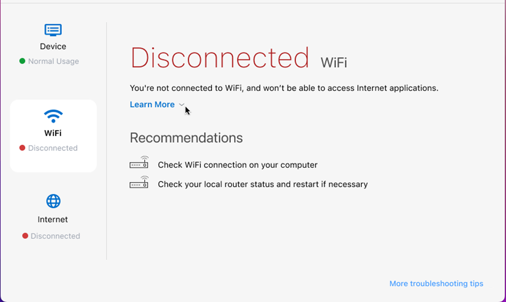 or WiFi may be disabled on your computer. | Check your WiFi connection. Check your WiFi router to make sure it is working. Alternatively,