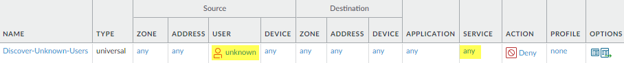 - Block unknown users attempting to run applications on any port to discover unknown users (gaps in User-ID coverage or attackers) and identify compromised devices (including embedded devices such as printers, card readers, and cameras). Place this rule after the application allow rules and the preceding block rule.