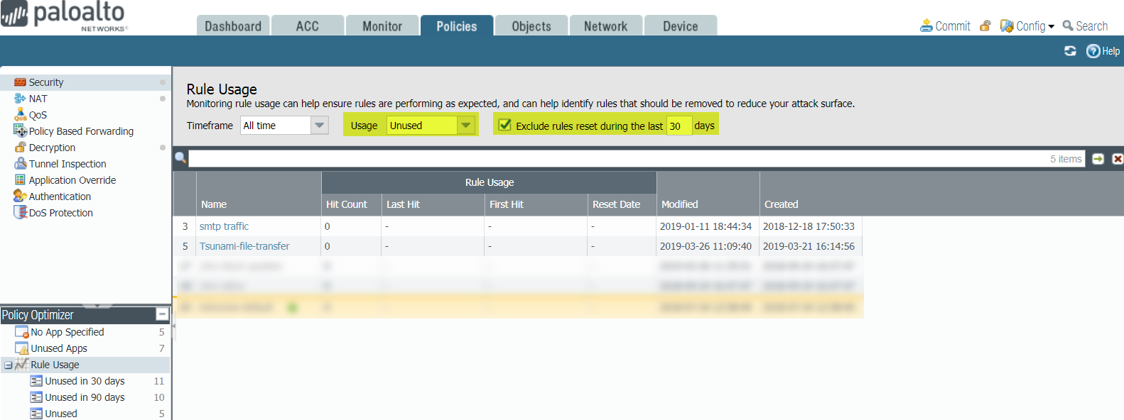 In some cases, unused rules are old rules created by administrators